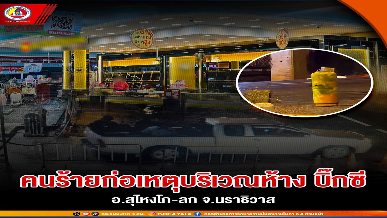 จากเหตุการณ์เมื่อวันที่ 5 ตุลาคม 2568 เวลาประมาณ 18.29 น. เกิดเหตุคนร้ายไม่ทราบจำนวน ใช้อาวุธปืนไม่ทราบชนิดและขนาด ปล้นร้านทองภายในห้างสรรพสินค้าบิ๊กซี อำเภอสุไหงโก-ลก จังหวัดนราธิวาส ส่งผลให้มีผู้ได้รับบาดเจ็บ 1 ราย คือ สิบเอก บุริศวร์ ระดาชัย สังกัดหน่วยเฉพาะกิจสันติสุข ถูกยิงได้รับบาดเจ็บขณะพยายามนำอาวุธประจำกายจากรถยนต์ของตนเองเข้าขัดขวาง เบื้องต้นได้นำส่งผู้บาดเจ็บไปรักษาที่ รพ.สุไหง-โกลก ปัจจุบันอาการพ้นขีดอันตรายแล้ว จากเหตุการณ์ดังกล่าว พลโท นรธิป โพยนอก แม่ทัพภาคที่ 4 / ผู้อำนวยการรักษาความมั่นคงภายในภาค 4 ขอแสดงความเสียใจต่อผู้ได้รับบาดเจ็บ และผู้ที่ประกอบการที่ได้รับผลกระทบทางเศรษฐกิจจากเหตุการณ์ของผู้ไม่หวังดี
