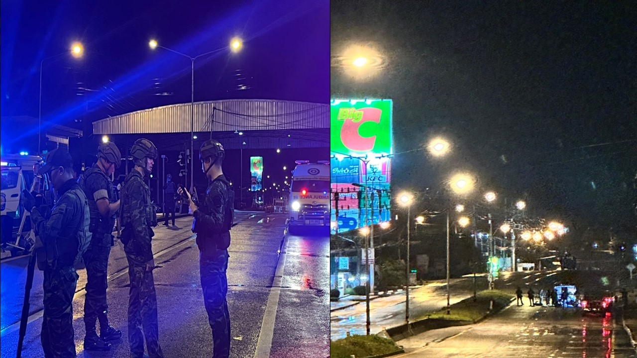 📝 เจ้าหน้าที่ตรวจพบวัตถุต้องสงสัยคล้ายระเบิดแสวงเครื่อง บริเวณจุดกลับรถหน้าห้างบิ๊กซี รวมทั้ง ตะปูเรือใบ วางตามถนนหลายจุด ซึ่งคาดว่าถูกใช้เพื่อสกัดการติดตามของเจ้าหน้าที่ เบื้องต้นได้ปิดกั้นพื้นที่และประสานหน่วยเก็บกู้วัตถุระเบิด (EOD) เข้าดำเนินการอย่างเร่งด่วน