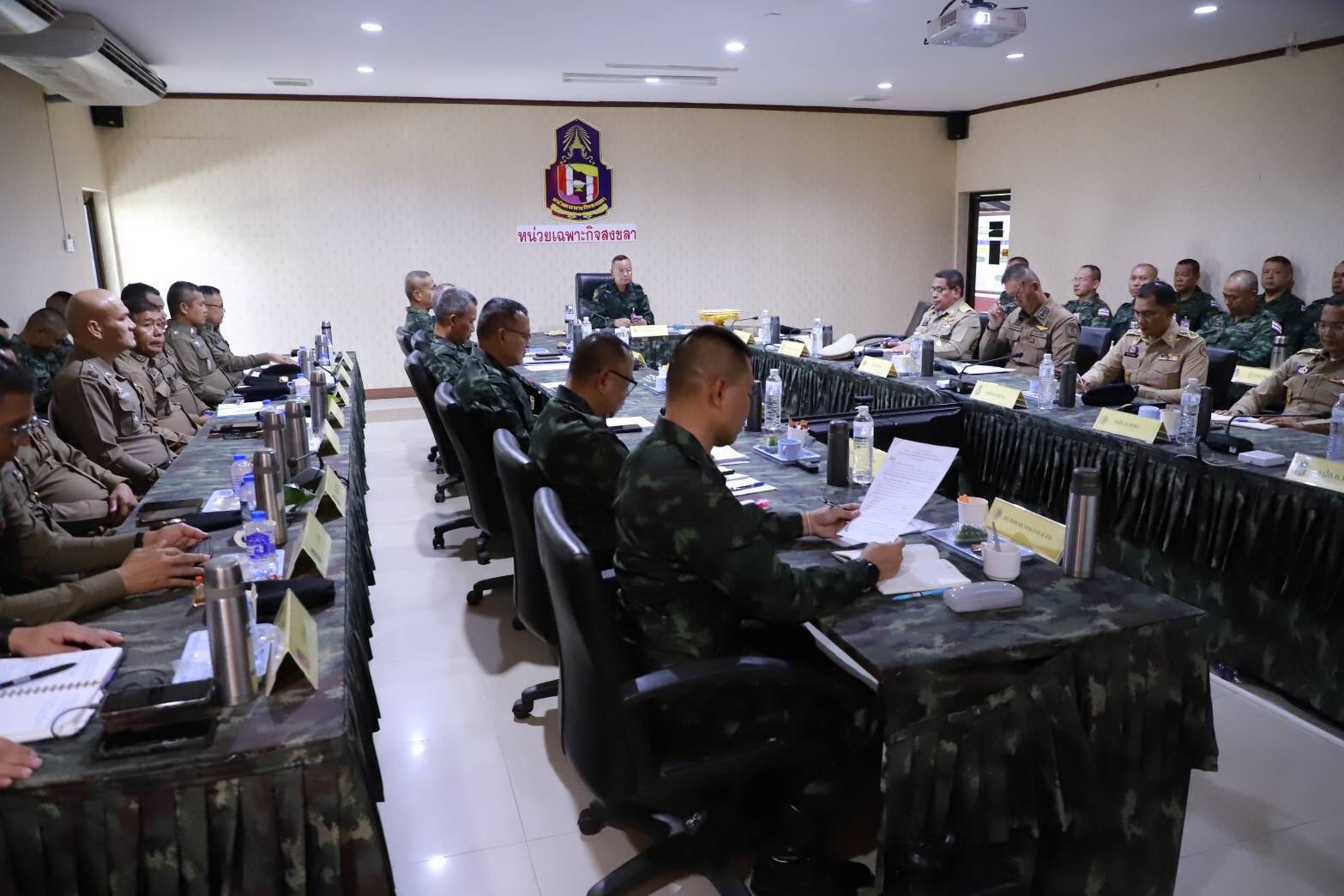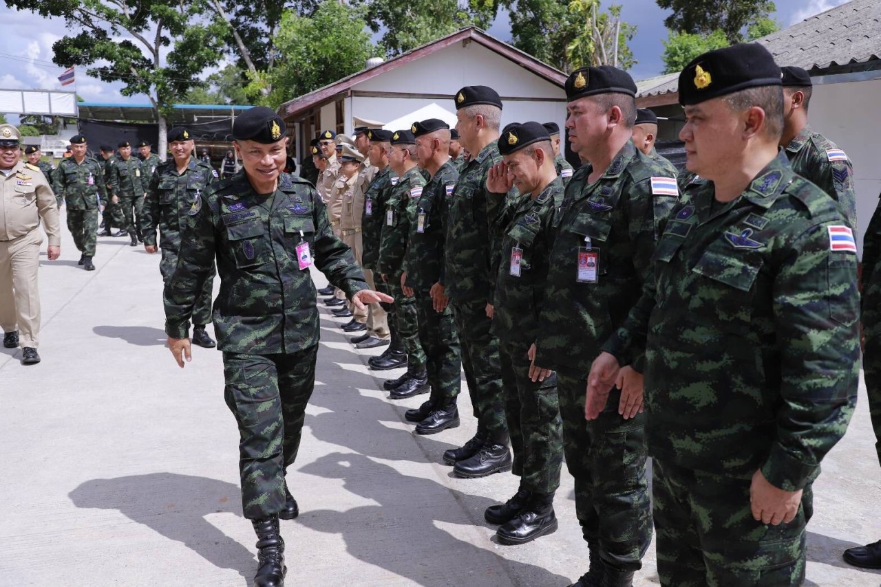 วันที่ 13 ตุลาคม 2568 เวลา 14.20 น. ที่หน่วยเฉพาะกิจสงขลา ตำบลท่าม่วง อำเภอเทพา จังหวัดสงขลา พลโท นรธิป โพยนอก แม่ทัพภาคที่ 4/ ผู้อำนวยการรักษาความมั่นคงภายในภาค 4 พร้อมคณะผู้บังคับบัญชา และผู้แทนฝ่ายอำนวยการกองอำนวยการรักษาความมั่นคงภายในภาค 4 ส่วนหน้า ลงพื้นที่ตรวจเยี่ยมติดตามผลการปฏิบัติงานของหน่วยเฉพาะกิจสงขลา ซึ่งรับผิดชอบควบคุมดูแลพื้นที่ 4 อำเภอ ได้แก่ อำเภอสะบ้าย้อย อำเภอเทพา อำเภอนาทวี และอำเภอจะนะ จังหวัดสงขลา โดยมี ผู้บังคับหน่วยเฉพาะกิจสงขลา รองผู้ว่าราชการจังหวัดสงขลา พร้อมด้วยส่วนราชการที่เกี่ยวข้อง และกำลังพลร่วมให้การต้อนรับและร่วมประชุมในครั้งนี้