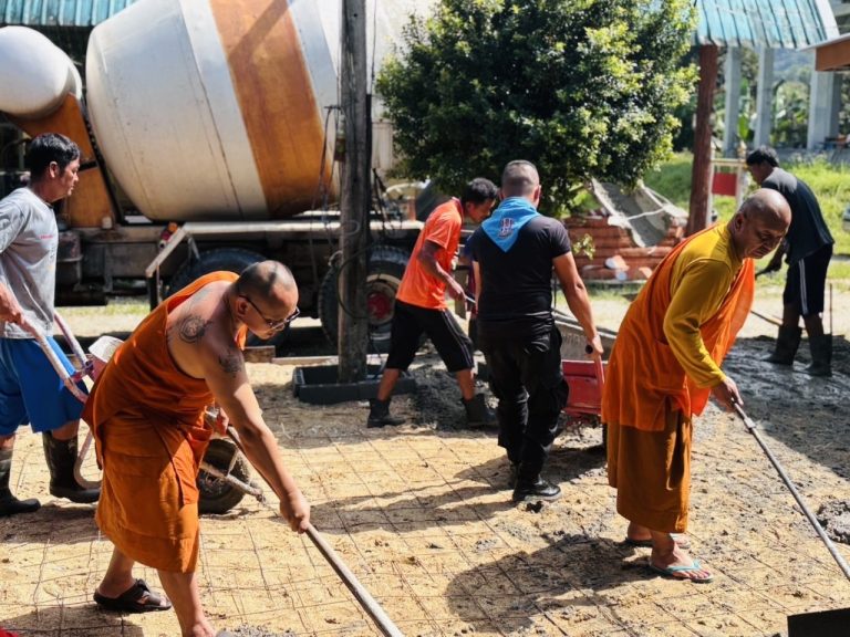 ทหารพราน 49 ร่วมแรงศรัทธา เทพื้นคอนกรีตหน้าศาลาวัดไอร์เจี๊ยะมังคลาราม เสริมความพร้อมใช้ในกิจกรรมศาสนาและชุมชน