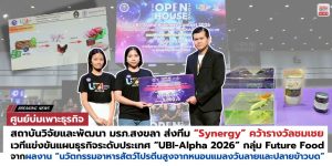 มรภ.สงขลา ส่งทีม “Synergy” คว้ารางวัลชมเชยเวทีแข่งขันแผนธุรกิจระดับประเทศ “UBI-Alpha 2026” กลุ่ม Future Food จากผลงาน “นวัตกรรมอาหารสัตว์โปรตีนสูงจากหนอนแมลงวันลายและปลายข้าวบด”