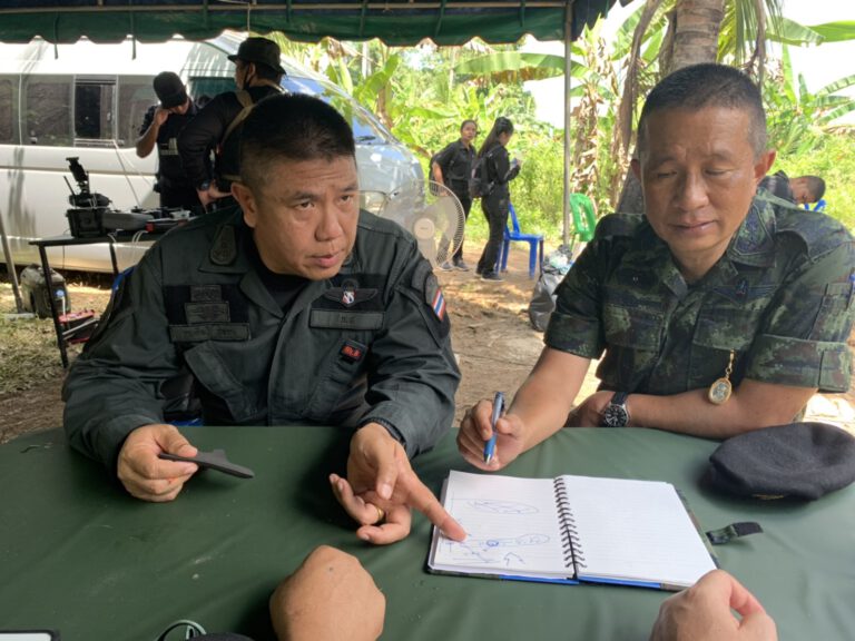 พล.ต.ต.ปิยะวัฒน์ เฉลิมศรี รอง ผบช.ภ.9/รองผบ.ศปก.ตร.สน.มลงพื้นที่ตรวจสถานที่เกิดเหตุจุดพบศพคนร้ายที่เสียชีวิต