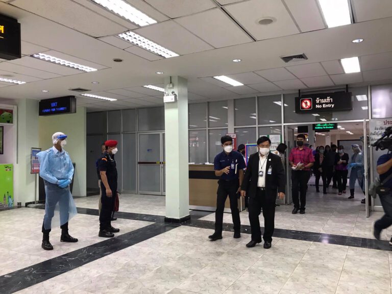 เรืออากาศโท ธนันท์รัฐ ประเสริฐศรี ผู้อำนวยการท่าอากาศยานหาดใหญ่ (ผหญ.) เป็นประธานในการฝึกซ้อมขั้นตอนการปฏิบัติเพื่อเตรียมความพร้อมรองรับการเปิดประเทศตามนโยบายของรัฐบาล