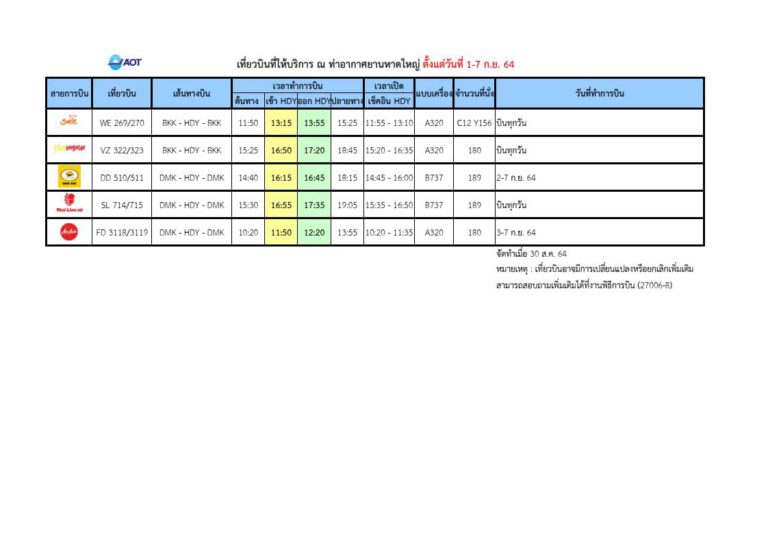 ขอให้ผู้โดยสารเผื่อเวลาเดินทางมาถึงสนามบิน เพื่อตรวจสอบเอกสารในการเดินทาง โดยสามารถเดินทางข้ามจังหวัดได้ (เฉพาะเหตุจำเป็น) และให้ปฏิบัติตามมาตรการด้านสาธารณสุขอย่างเคร่งครัด ***สำหรับการปฏิบัติตัวของผู้โดยสาร เบื้องต้นให้เป็นไปตามที่สำนักงานการบินพลเรือนแห่งประเทศไทย (กพท.) กำหนด ผู้โดยสารสามารถตรวจสอบข้อกำหนดการเดินทางเข้าพื้นที่แต่ละจังหวัดได้ที่www.moicovid.com/ข้อมูลสำคัญ-จังหวัด/หมายเหต
