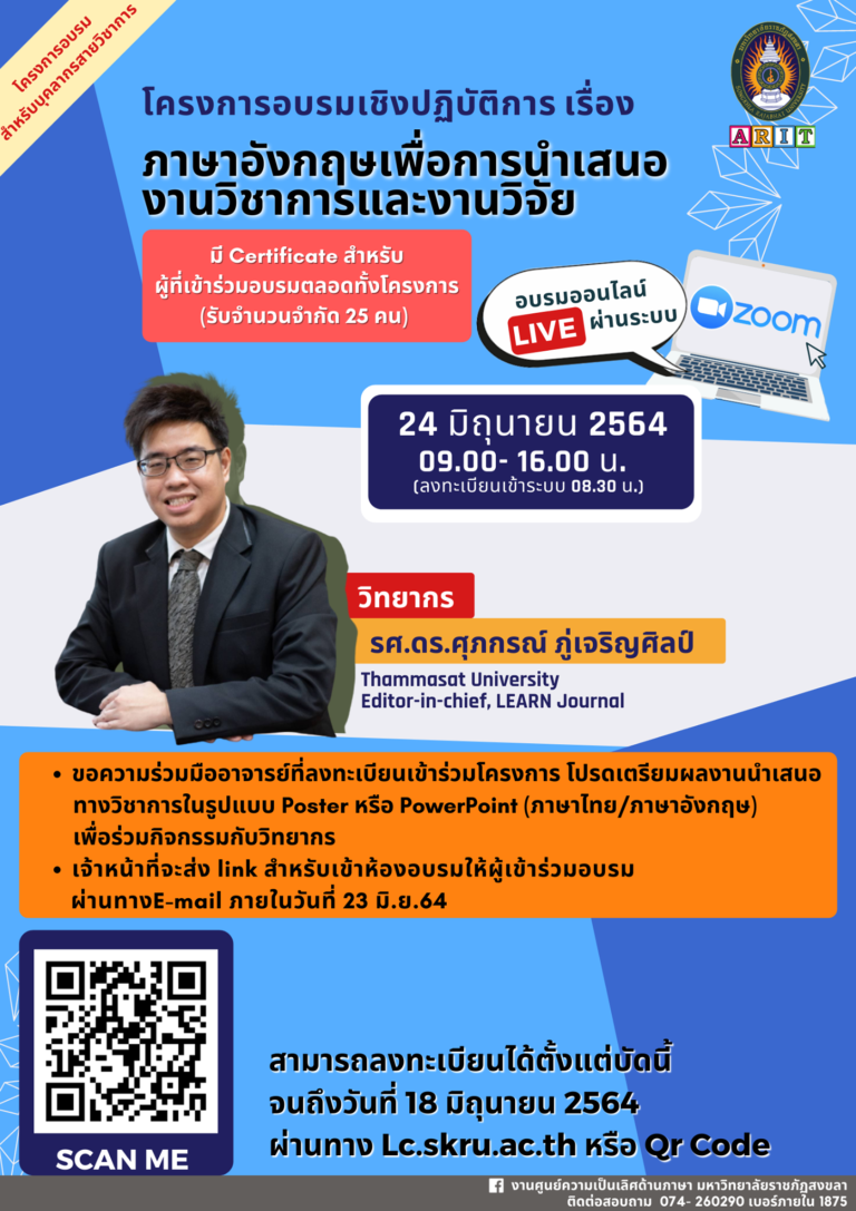อธิการบดี มรภ.สงขลา นำทีมผู้บริหาร-บุคลากรสถาบันวิจัยและพัฒนา ลงพื้นที่ ต.รำแดง อ.สิงหนคร จัดอบรมวิถีเศรษฐกิจพอเพียงและสร้างอาชีพเสริมเพื่อยกระดับรายได้กลุ่มผู้มีรายได้น้อย ถ่ายทอดความรู้พร้อมฝึกปฏิบัติตัดเย็บผลิตภัณฑ์จากผ้าพื้นถิ่นการเพาะและแปรรูปเห็ดนางฟ้า การจัดการตลาดชุมชนและบัญชีครัวเรือน