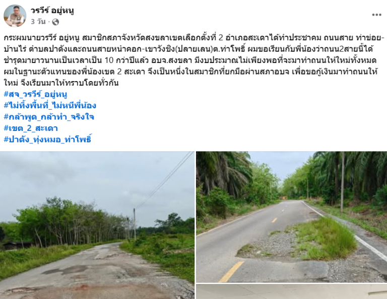 “ส.อบจ.สงขลา” สุดอั้นระบายความในใจ 4 ปี หมดวาระทำถนนให้ชาวบ้านได้ 1 กม. แก้ปัญหาไม่จบ วอนขอความเห็นใจฟังเสียงสะท้อนชาวบ้านให้โอกาสแก้ปัญหาประชาชนในพื้นที่อย่างแท้จริง