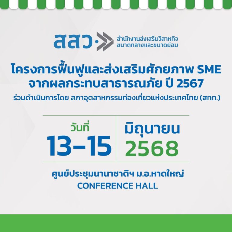 สสว.ร่วมกับสภาอุตสาหกรรมท่องเที่ยวแห่งประเทศไทย (สทท.) เตรียมเปิดตลาดนัด Recharge Market 2025 ภายใต้โครงการกระตุ้นเศรษฐกิจและช่วยเหลือเยียวยาฟื้นฟู SME จากสาธารณภัย ปี 2567 ในพื้นที่จังหวัดสงขลา จัดเต็มกิจกรรมพร้อมผู้ประกอบการ SME ทั่วไทยกว่า 250 ราย