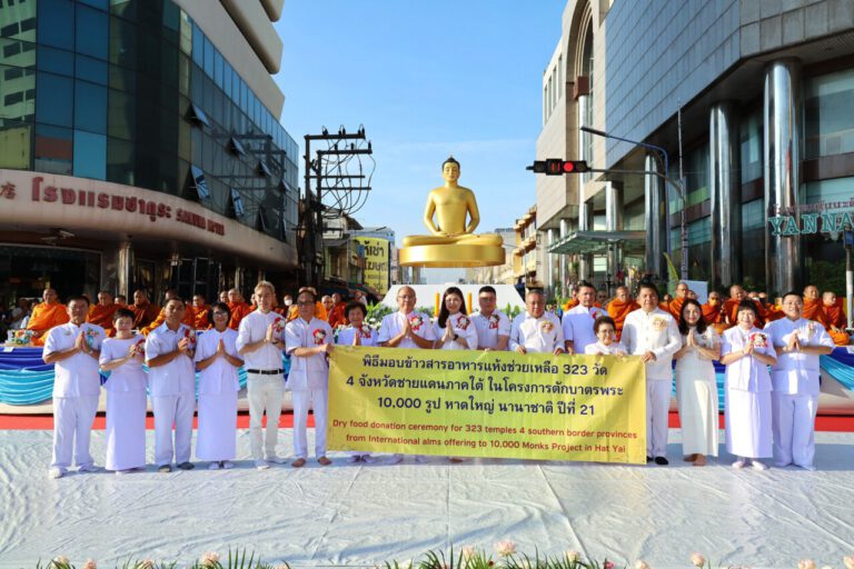 พุทธศาสนิกชนทั้งชาวไทยและต่างประเทศกว่า 50,000 คน ร่วมทำบุญตักบาตรพระ 10,000 รูปนานาชาติ ใจกลางเมืองหาดใหญ่