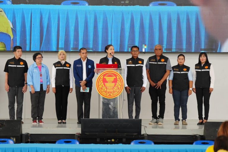 นายกสาครร่วมการประชุมจัดระเบียบรถจักรยานยนต์สาธารณะและมอบเสื้อวินเพื่อให้เข้าใจกฎจราจรและการขับขี่ที่ปลอดภัยในการให้บริการประชาชน